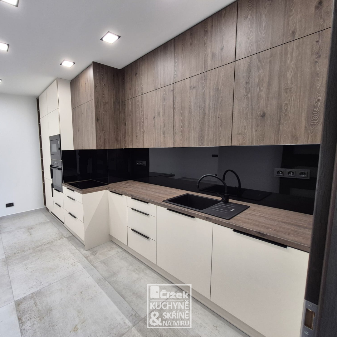 Doufáme, že najdete inspiraci ve fotogalerii kuchyní, které vyrábíme a montujeme přesně na míru, ze široké škály materiálů, dle přání zákazníka. Do kuchyní dáváme pouze kování značky BLUM a spotřebiče dle přání zákazníka. Kuchyně může být jak s foliovanými dvířky, lamino dvířky, lakovanými dvířky, tak samozřejmě z dýhy nebo masivu.